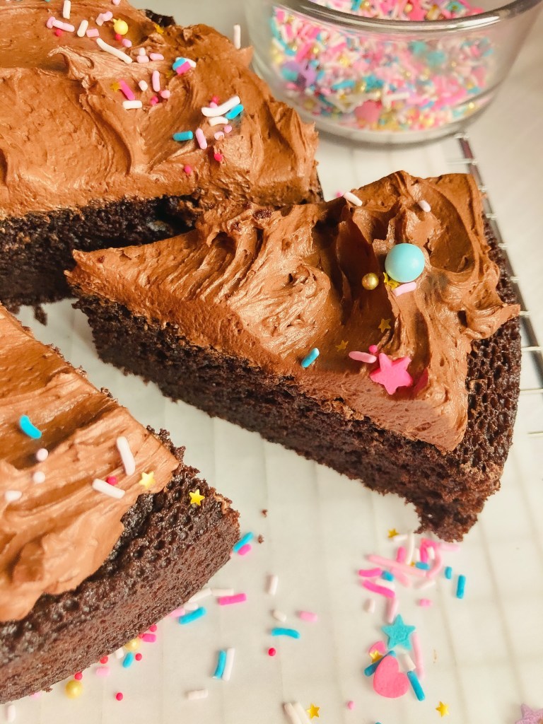 If you’re looking for a delicious chocolate cake for beginner bakers — this is it. This easy-to-make cake is moist and rich and made even more decadent topped with a chocolatey buttercream frosting.